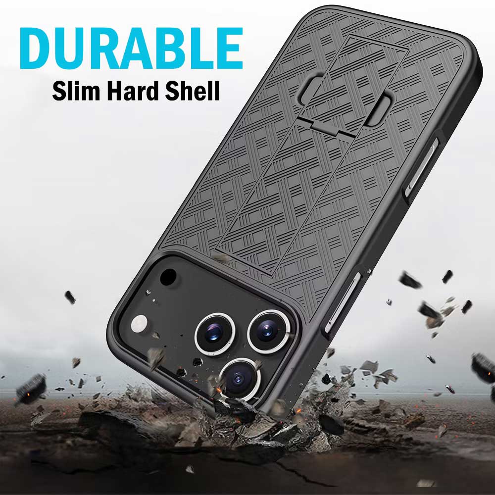 • 2-in-1 carrying Solution and unique slide-in design for ease of use for iPhone 17 Pro Max (6.9") ONLY. High quality shell holster case with anti slip grip design.
