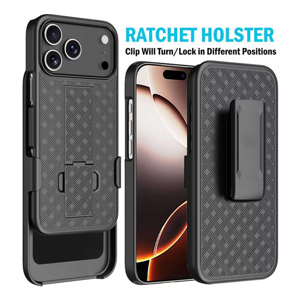 The high-quality build with its smart design allow you to carry your new iPHONE 17 PRO MAX (6.9") around easily and comfortably. Slim, stylish design features rugged skin tough enough to handle bumps, scratches and shocks.This swivel holster and rear cover is exactly what you need. Rubberized Swivel Holster with Rear Cover Shell included. Allows your phone to be worn on a waistband or belt and can be taken off of the belt clip without removing it. A locking swivel belt clip is easily locked into an extended position and provides different viewing angles while watching movies or video calls, also rotatable 180 degrees. The case can be also be used with holster or as a separate, slim carrying solution. Advanced locking mechanism securely holds phone in place. Precisely cut to preserve full use of volume buttons, charger, camera, microphone, headphone jack, and all other ports.